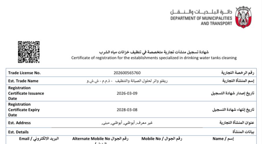 Abu Dhabi Municipality requires regular water tank cleaning and disinfection, typically every 6 months. Non-compliance can lead to violations and health risks.